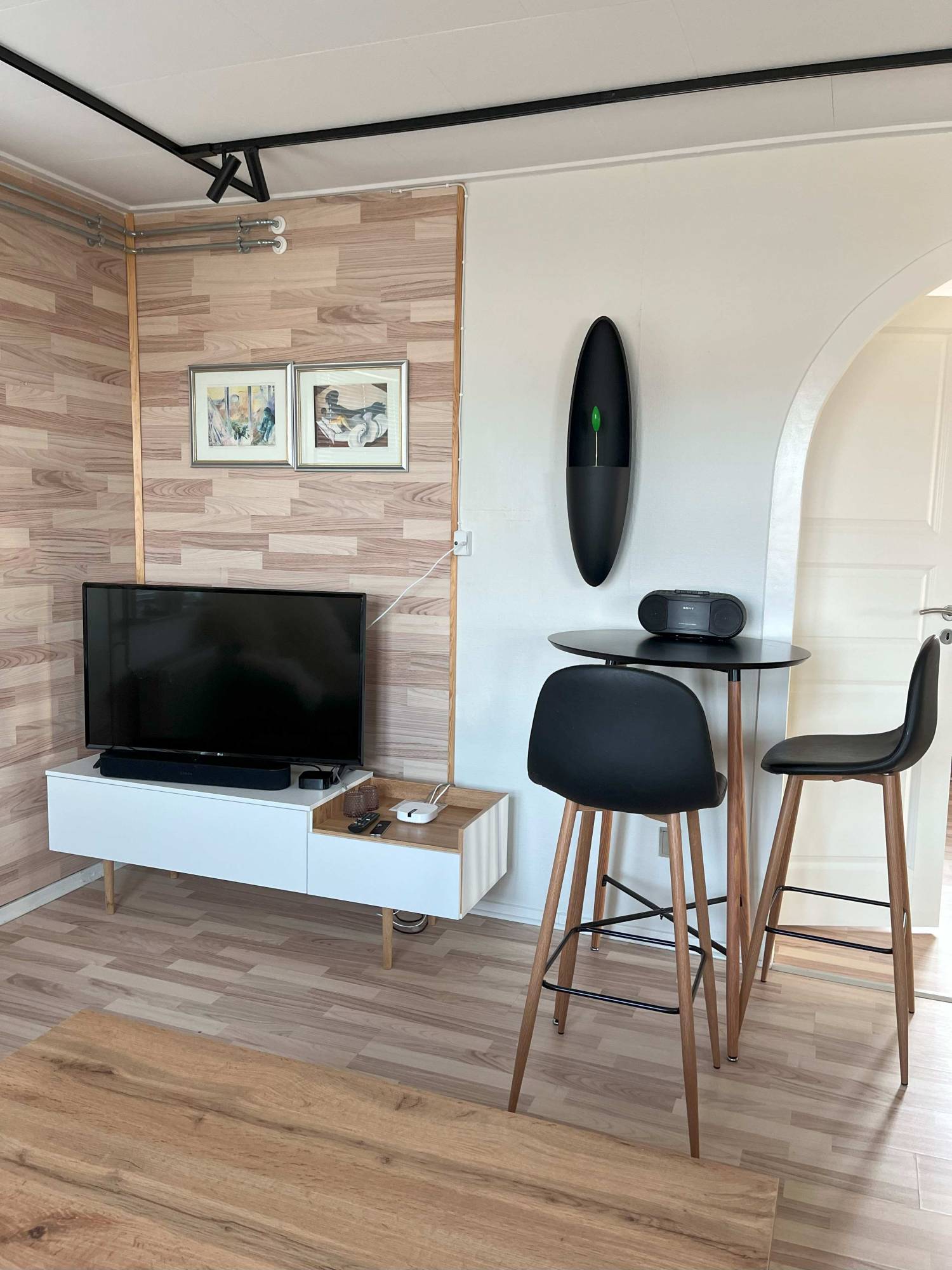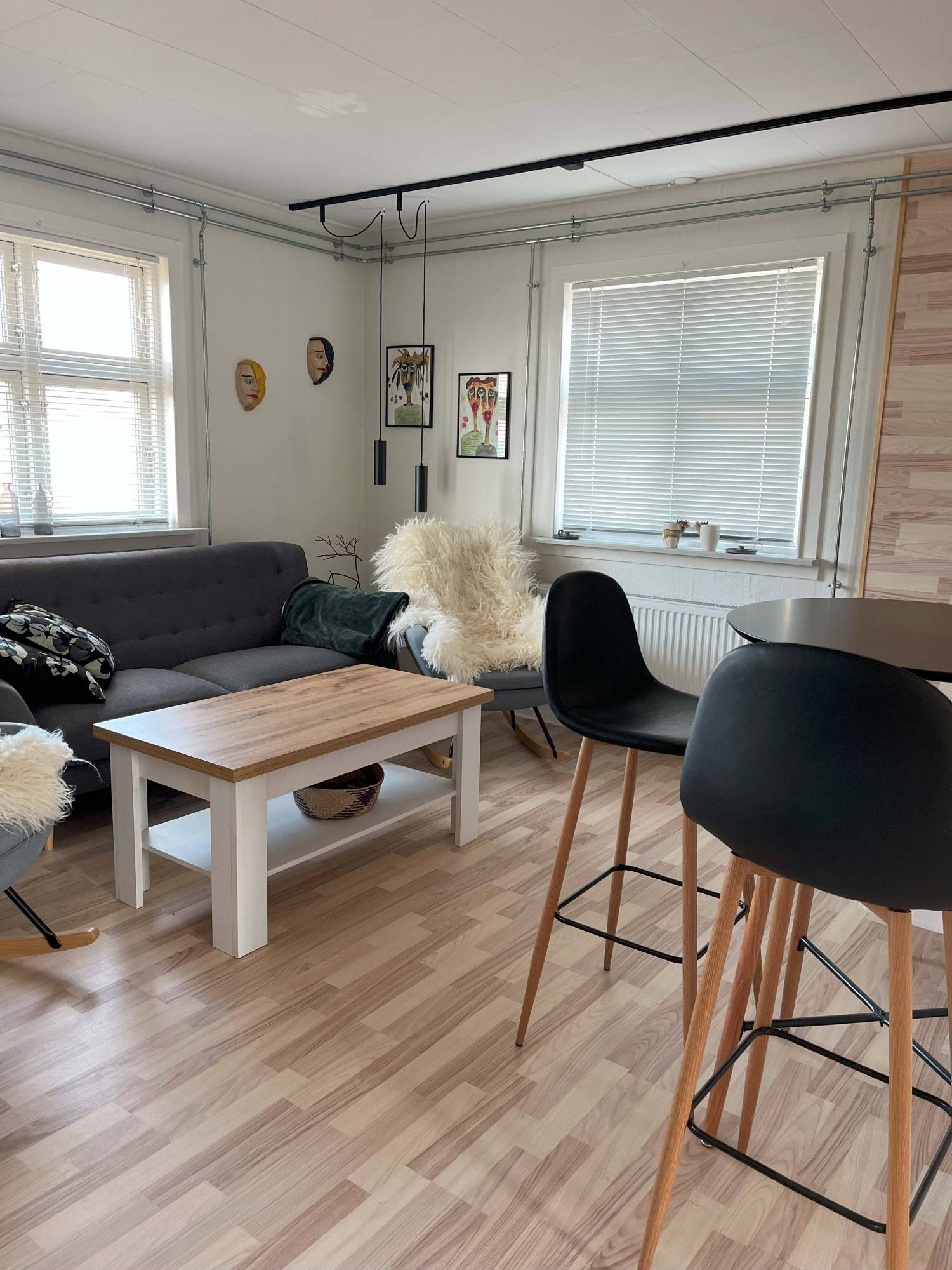 Kitchen, livingroom, 2 bedrooms, bathroom. Washingmachine.